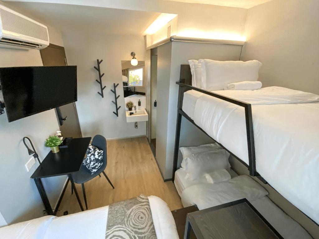 Meskipun kamarnya mini, tapi lumayan lah ya. Kami pesan yang triple bed, dengan konfigurasi 1 kasur besar dan 1 bunkbed. praktis space di dalam kamar ngga cukup buat gelar koper gede 🙂 tapi lumayan lah dengan budget sekitar 1.5 juta rupiah per malam. Di sini juga dekat dengan Laundry coin, sekitar 7-8 menit jalan kaki di area apartment kompleks dekat Bugis Junction. Setiap ke luar negeri pasti saya dan istri menyempatkan cuci di laundry coin yang lebih murah dan bawa setrika portable sendiri 🙂