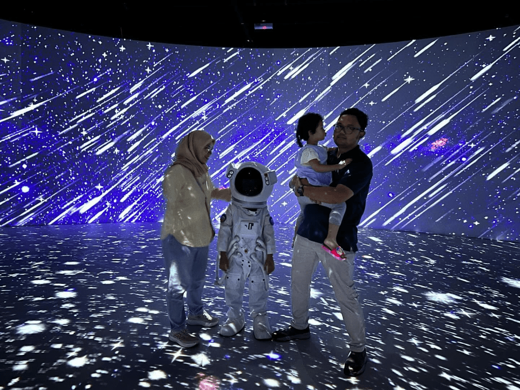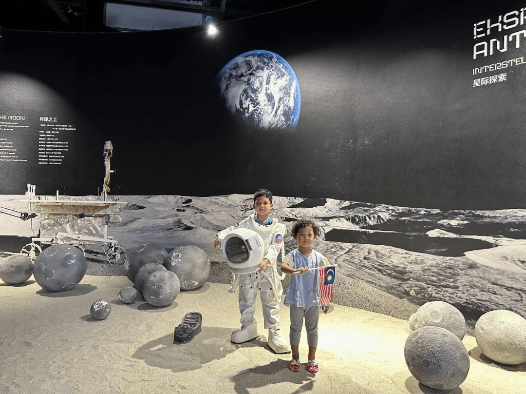 Menurut saya ini seru banget karena dengan harga RM 58 (Rp 180rb) per orang, kita bisa lihat pameran luar angkasa yang lumayan interaktif dan bikin anak-anak suka. Ditambah bisa sewa kostum astronot juga.