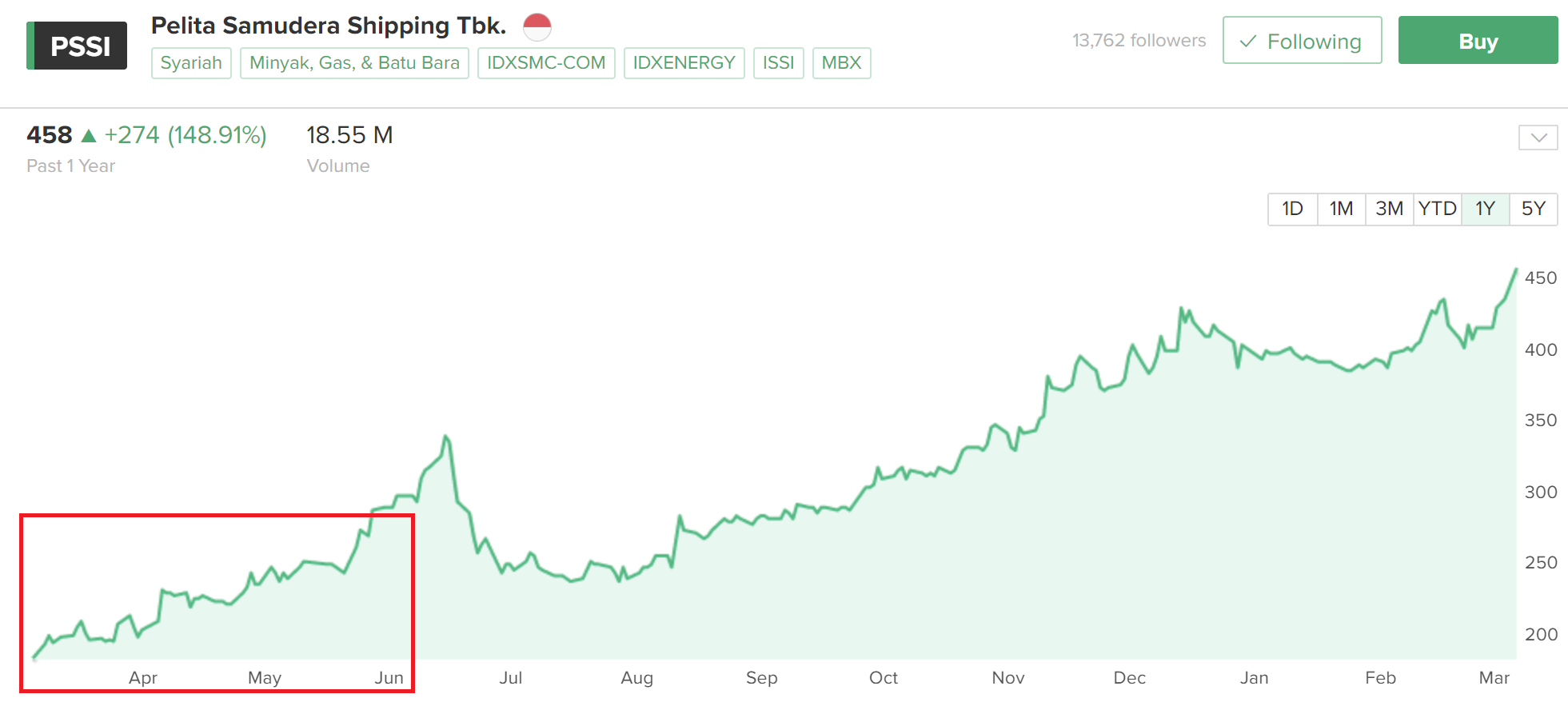 Coba lihat harga sahamnya, sejak sideways panjang dari 2020, di awal 2021 trend nya mulai naik, seiring dengan kenaikan harga batubara, apalagi muncul berita PSSI ini sudah dapat kontrak jangka panjang dari perusahaan batubara lokal untuk 3-5 tahun ke depan yang artinya stream revenue bisa dijamin. Di bulan Juni, harga sempat meroket sampai ke 350 sebelum kembali ke 250-an waktu itu. Saya tetap hold dan bahkan nambah sedikit-sedikit waktu itu. Hasilnya? PSSI ini jadi bagger ke-3 saya sebelum ADRO