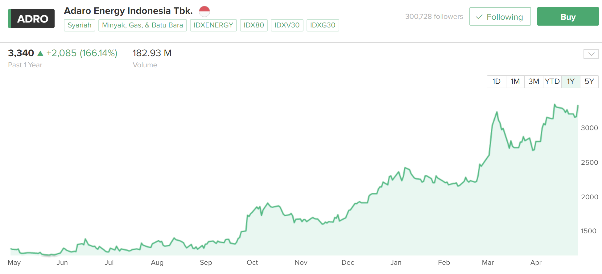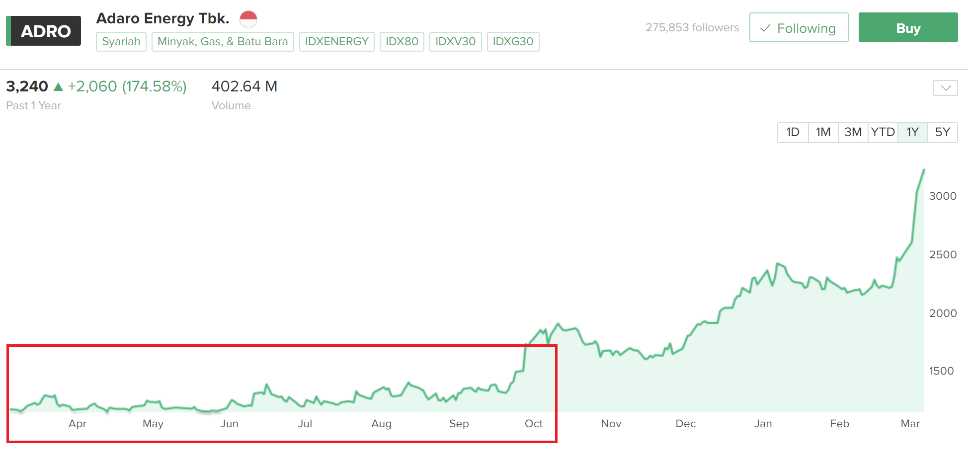 Pergerakan harga saham ADRO selama 1 tahun ke belakang