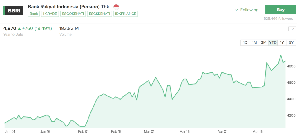 BBRI satu-satunya bank besar yang saya pegang, menunjukkaan kinerja sangat bagus di Q1 2022. Kinerja bagus bank besar biasanya akan tercermin dalam pertumbuhan ekonomi nasional. Kita lihat apakah harganya sanggup tembus 5,000 rupiah habis lebaran atau nggak.