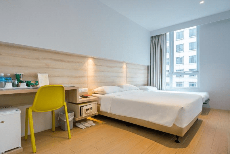 Sayangnya saya lupa ambil foto detil kamarnya jadi cuma bisa nyomot dari google aja. Tapi kamarnya tuh luas banget, sekitar 6×6 meter mungkin dan letaknya di pojokan dekat tangga darurat. Kamarnya di lantai 3 dan ada jendelanya yang menghadap ke bagian belakang hotel. Kamar mandinya dipisah antara yang untuk mandi, dan untuk buang air. Tips berikutnya kalau pergi ke SG adalah selalu bawa alat cebok (semprotan) atau beli aqua yang ukuran 1.5L setelah diminum, botolnya ditaruh di kamar mandi untuk cebok. Karena hampir 100% kamar mandi di hotel di SG kamar mandi kering tanpa cebokan air wkwk.