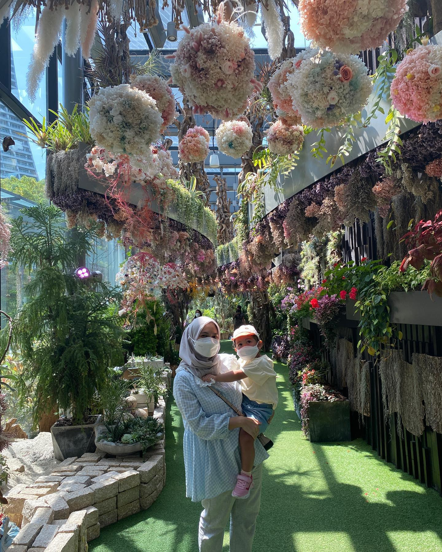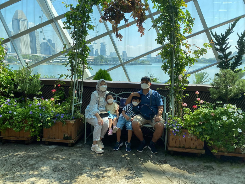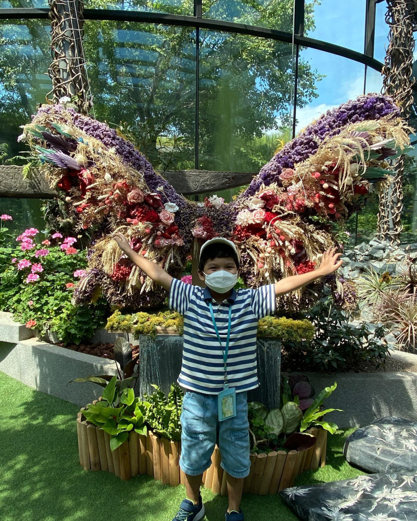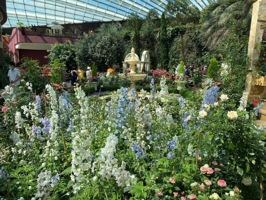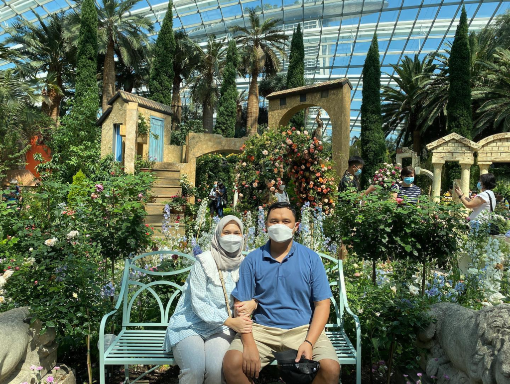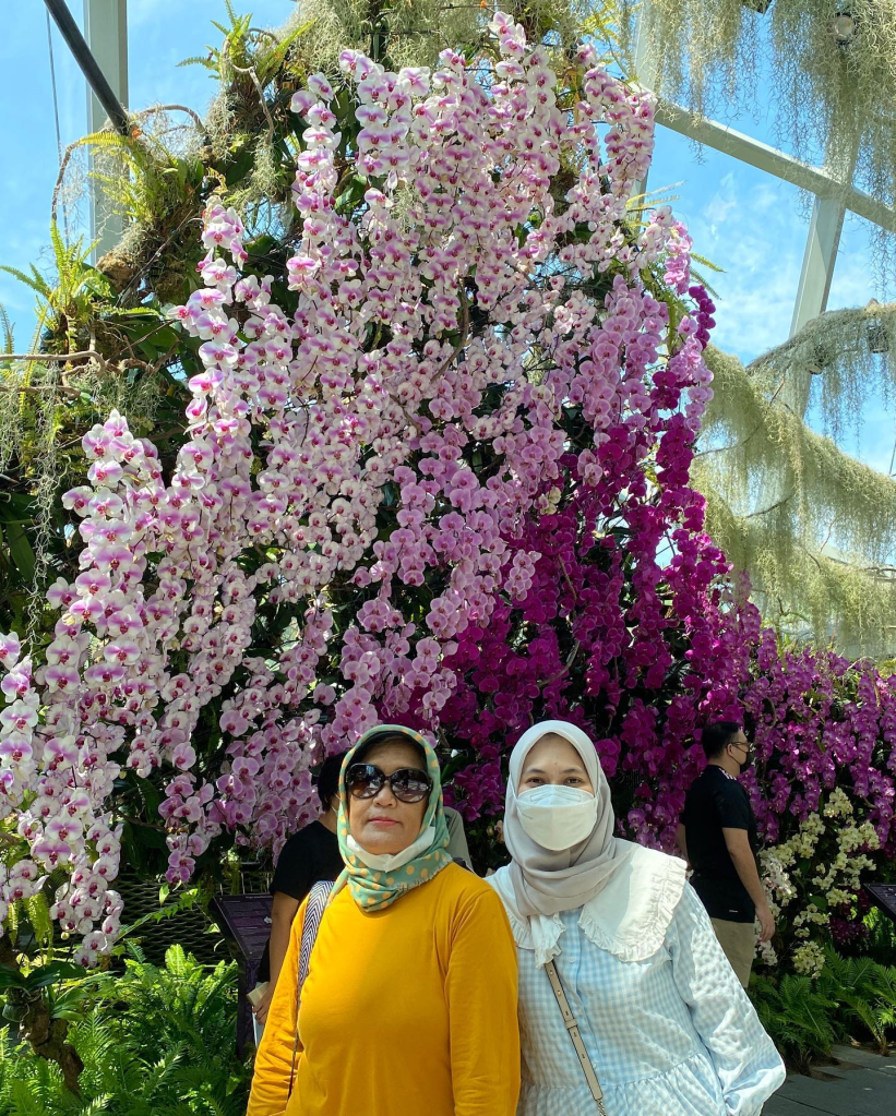 Kalau mau santai lihat-lihat semua bunga dan foto-foto, perlu waktu sekitar 1.5 jam untuk dihabiskan di sini. Karena masih pandemi, di penjuru Flower Dome ada petugas rompi merah yang berjaga-jaga untuk menegur pengunjung yang lepas masker ketika foto. Jadi ya kalau ada yang dapat foto tanpa masker berarti curi-curi menghindari petugasnya.