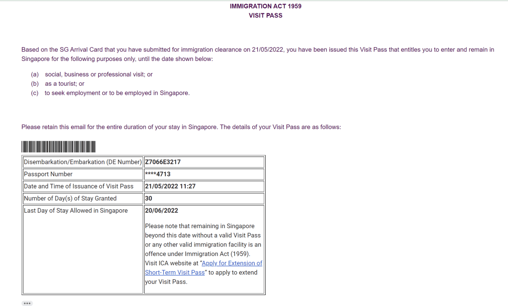Hasilnya nanti kita akan dapat email seperti ini yang berarti sudah approved untuk masuk ke Singapur.