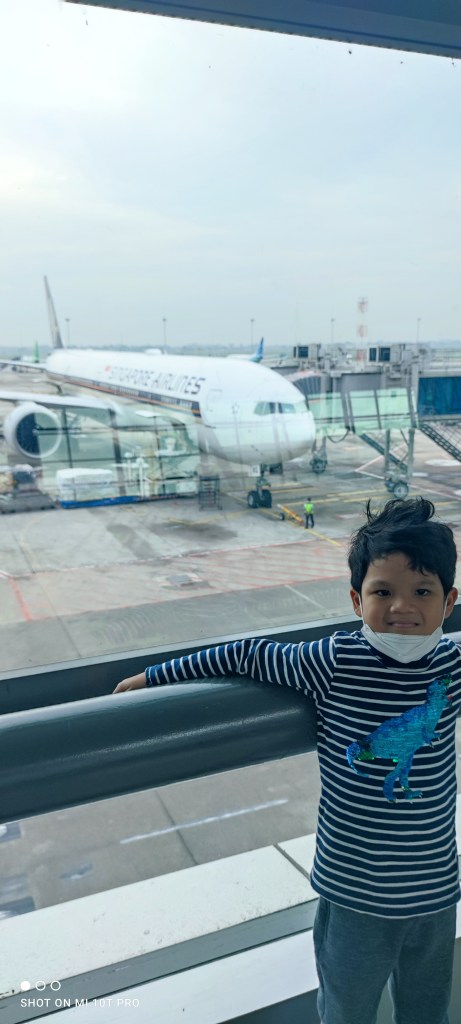 Karena alasan inilah, saya dan istri memutuskan untuk langsung hunting tiket di bulan April untuk keberangkatan di minggu ketiga Mei saat yang lain sudah selesai cuti Lebaran. Ngga disangka, ternyata hunting tiket berhasil. Karena saya dan istri masih ragu untuk pergi berdua dengan bawa 1 bocah 6 tahun dan 1 balita, akhirnya kami ajak ibu saya untuk ikut. Dan dapatlah hasil hunting tiket Singapore Airlines CGK-SIN p.p. untuk 5 orang seharga Rp 18 juta. Kalau dihitung per orangnya sekitar Rp 3 jutaan. Untungnya biaya tiket ini keganti dari dividen dari saham batubara di 2022 ini hehe.