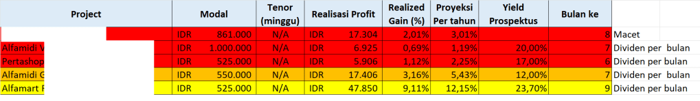 Seperti pembahasan di tulisan saya sebelumnya, saya invest di P2P lending sudah sejak 2020 dan dua P2P lending andalan saya adalah platform investasi ternak berwarna hijau dan crowdfunding empowering ibu-ibu yang warnanya ungu. Tapi di samping itu saya juga punya sedikit investasi crowdfunding alfamart/alfamidi di platform biru.