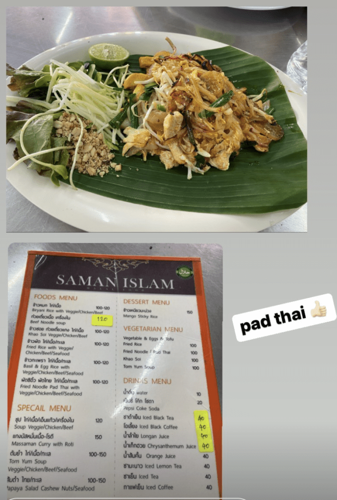 Agenda ke Chatuchak ini apalagi kalau bukan cari kaos bergambar Thailand, tas bergambar Thailand, mainan Tuk-tuk, gantungan kunci, dan mencicipi Mango Sticky Rice di salah satu lapak makanan di sini. Di Chatuchak ini ada beberapa spot makanan muslim owned juga, salah satunya adalah Saman Islam, penjual Pad Thai dan nasi biryani ini. Yang masak ibu-ibu menggunakan hijab dan banyak juga orang-orang Indonesia/Malaysia yang makan di lapak ini. Harga per menu nya sekitar 100 THB (50 ribuan) dan Pad Thai nya enak menurut saya.