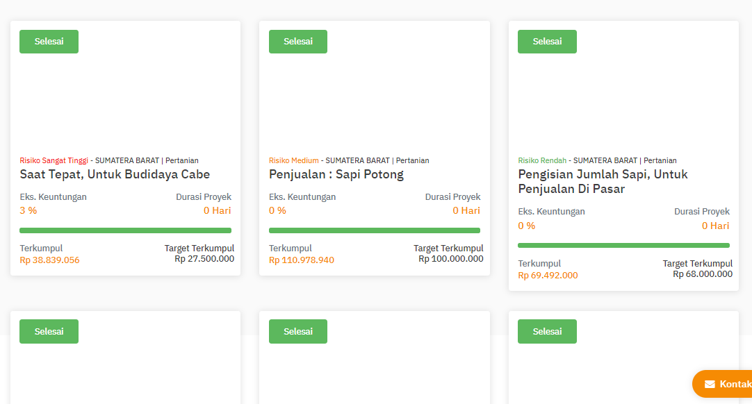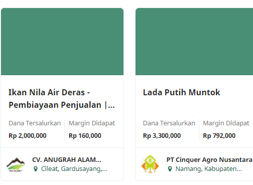 Mirip seperti IGR*W, di sini P2P dengan spesialiasi proyek pertanian dan perkebunan. Saya mulai ikut di sini sejak 2017 dan sudah masuk sekitar 15-an proyek. Beda dengan IGR*W, di sini nilai per lembar sahamnya dibanderol hanya 500-an ribu aja, jadi lebih terjangkau di dompet.