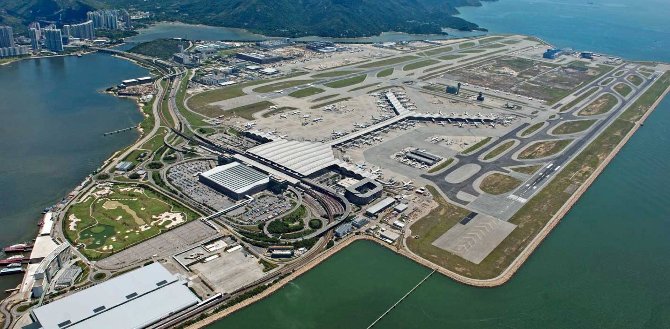 Ketika lepas dari Airport Island Station, pemandangan dan keseruan dimulai, di sisi kanan terlihat HKG Airport dengan sangat jelas. Tanjakan cable car kira-kira sekitar 30-an derajat dan cable car ini kokoh jadi biarpun ada angin kencang di luar, guncangannya nggak kerasa.