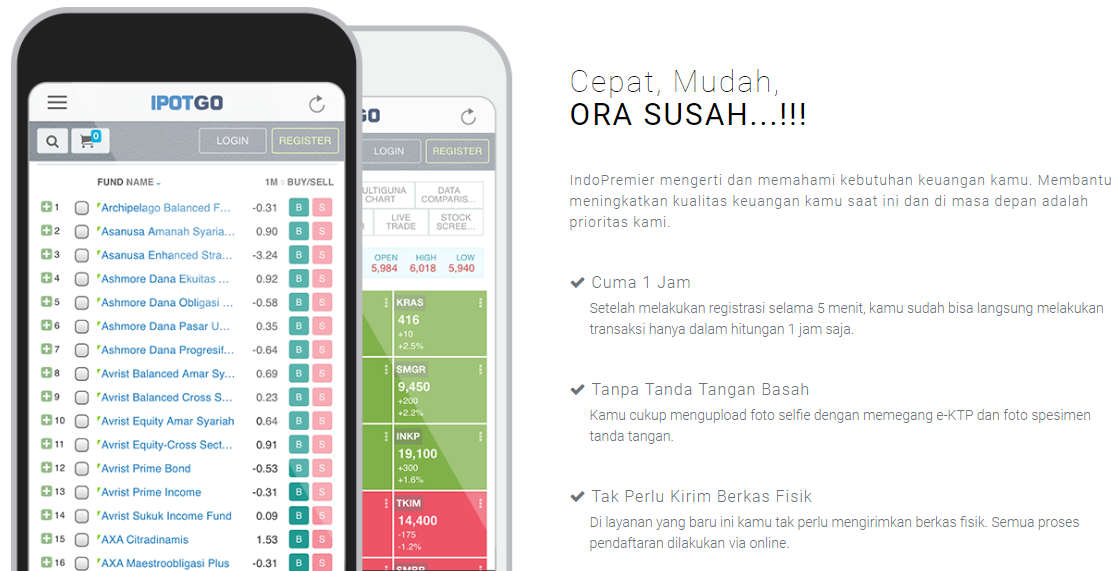 Cara mendaftarnya mudah sekali. Masuk saja ke  situs  IPOT ini, install apps nya dan ikuti petunjuk yang ada di dalamnya seperti pengisian biodata, nomor rekening bank, NPWP, dan terakhir melengkapi data diri dengan mengirimkan foto diri sedang memegang e-ktp dan membubuhkan tandatangan digital di bagian akhir proses registrasi. Pengisiannya hanya 5-10 menit dan verifikasi akan dilakukan di hari kerja oleh CS nya.